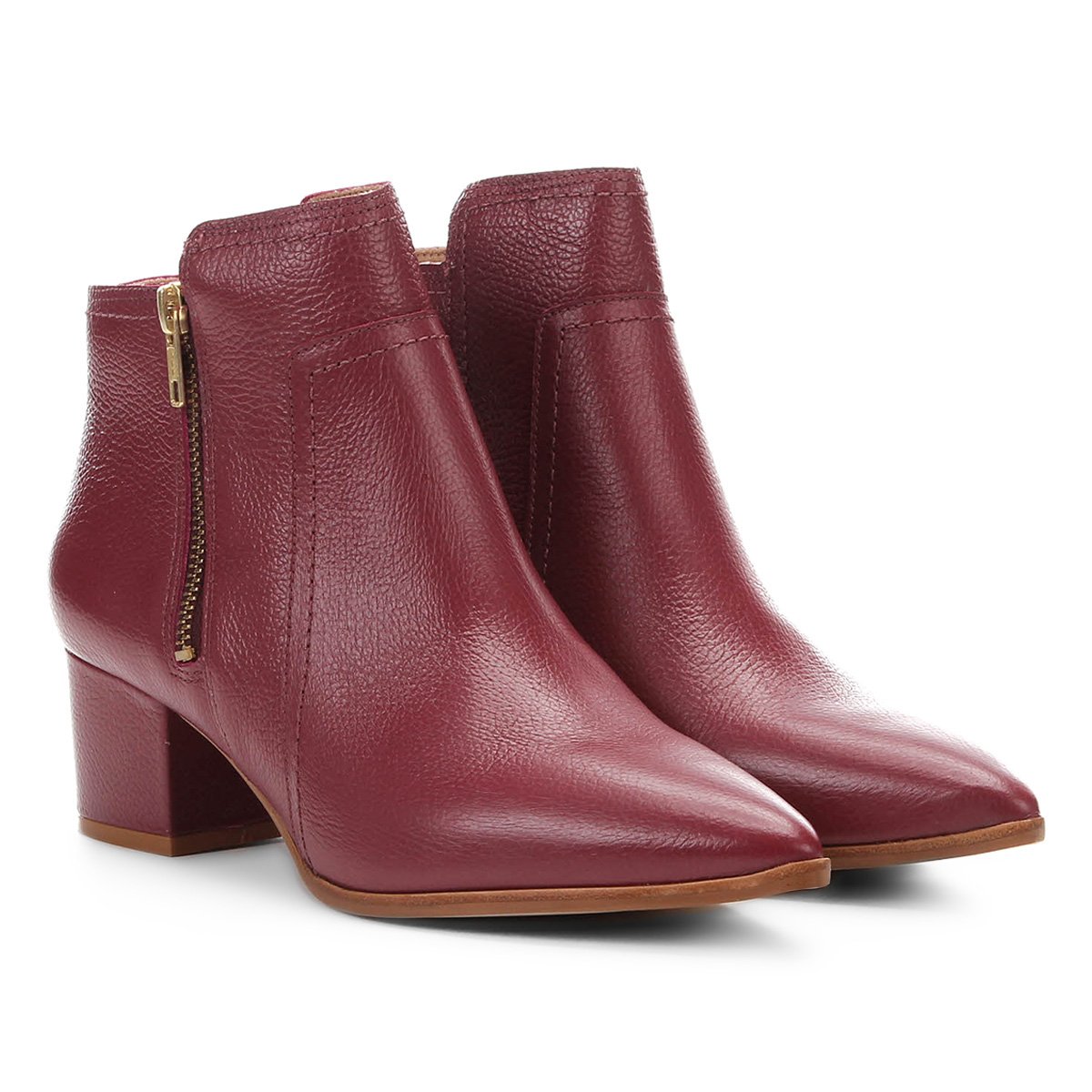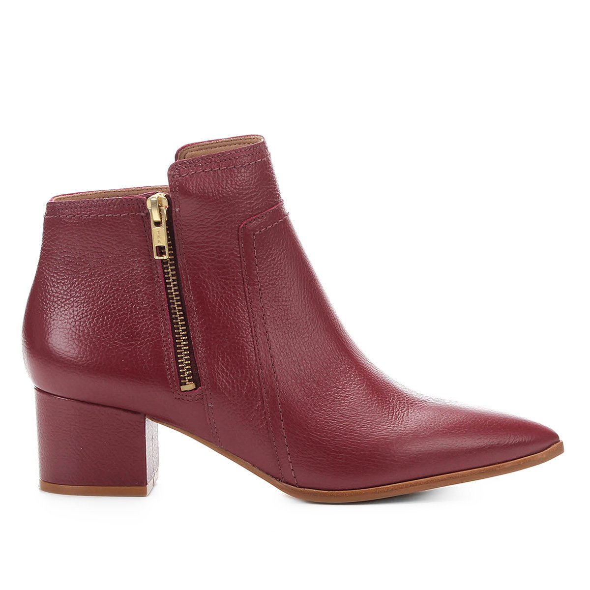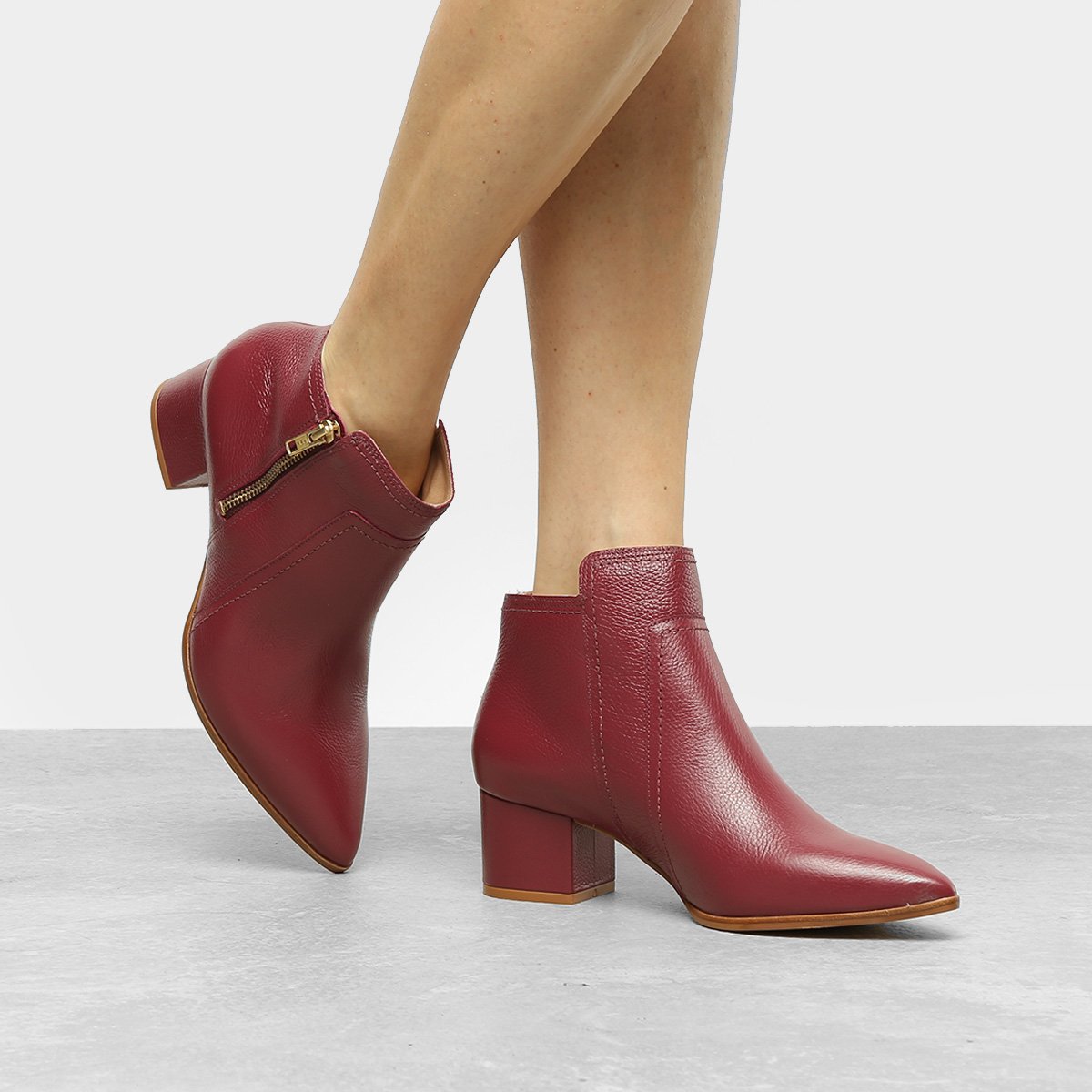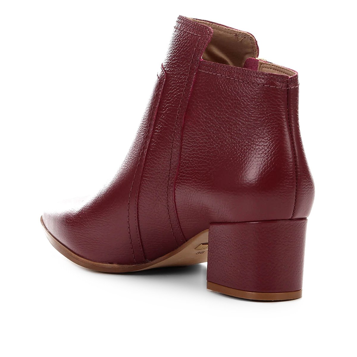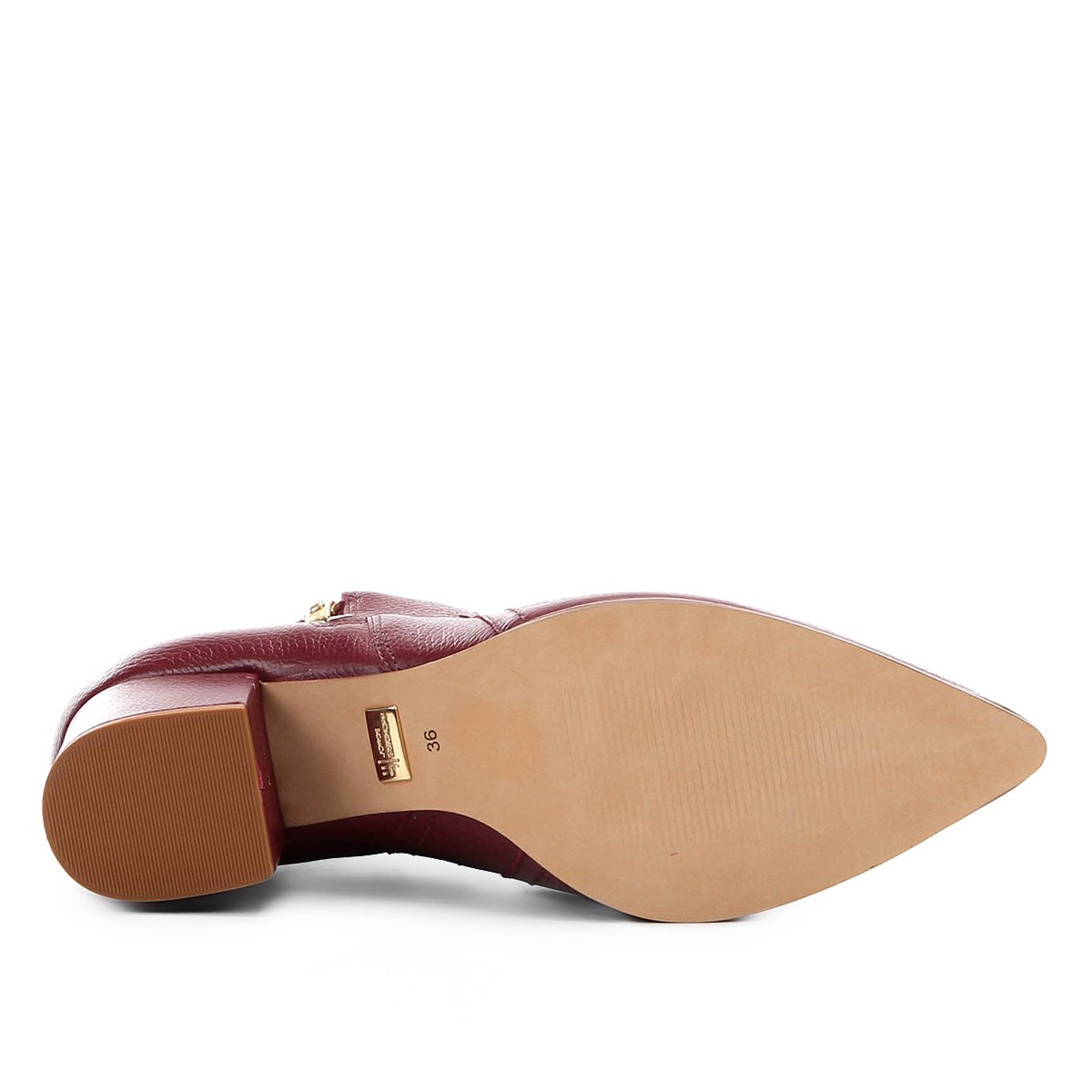 Bota Jorge Bischoff Cano Curto Couro Bico Fino Salto Grosso Feminina - Vinho
