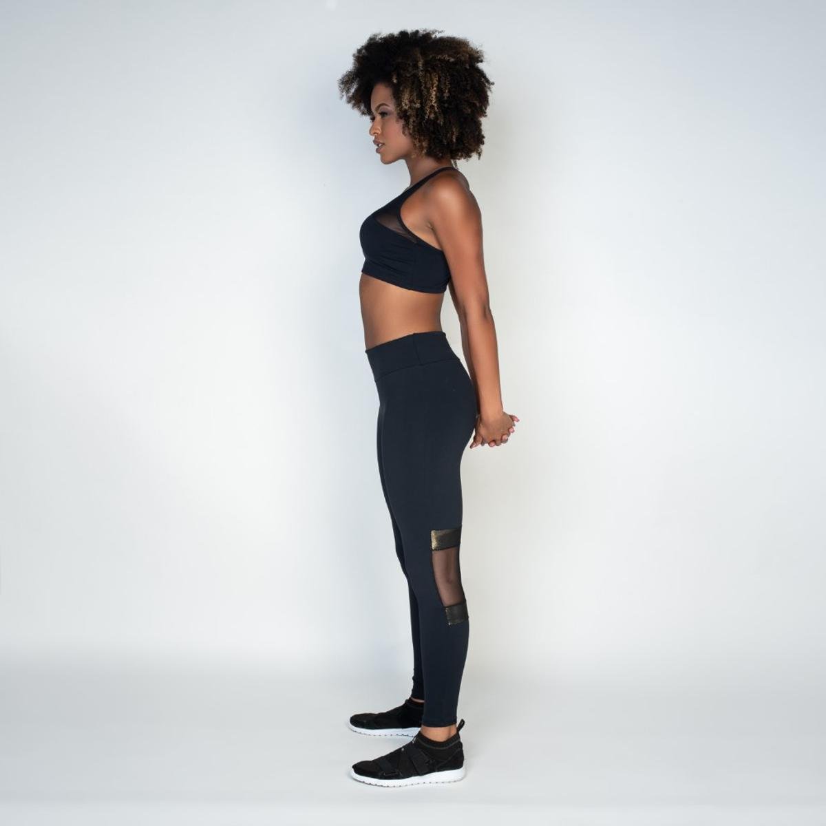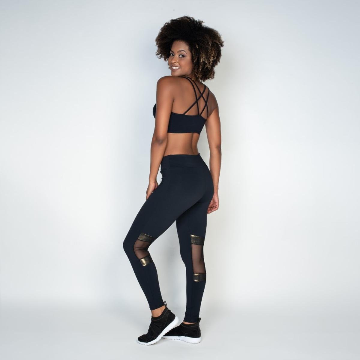CALÇA LEGGING HOLOGRÁFICO - PRETO/Dourado