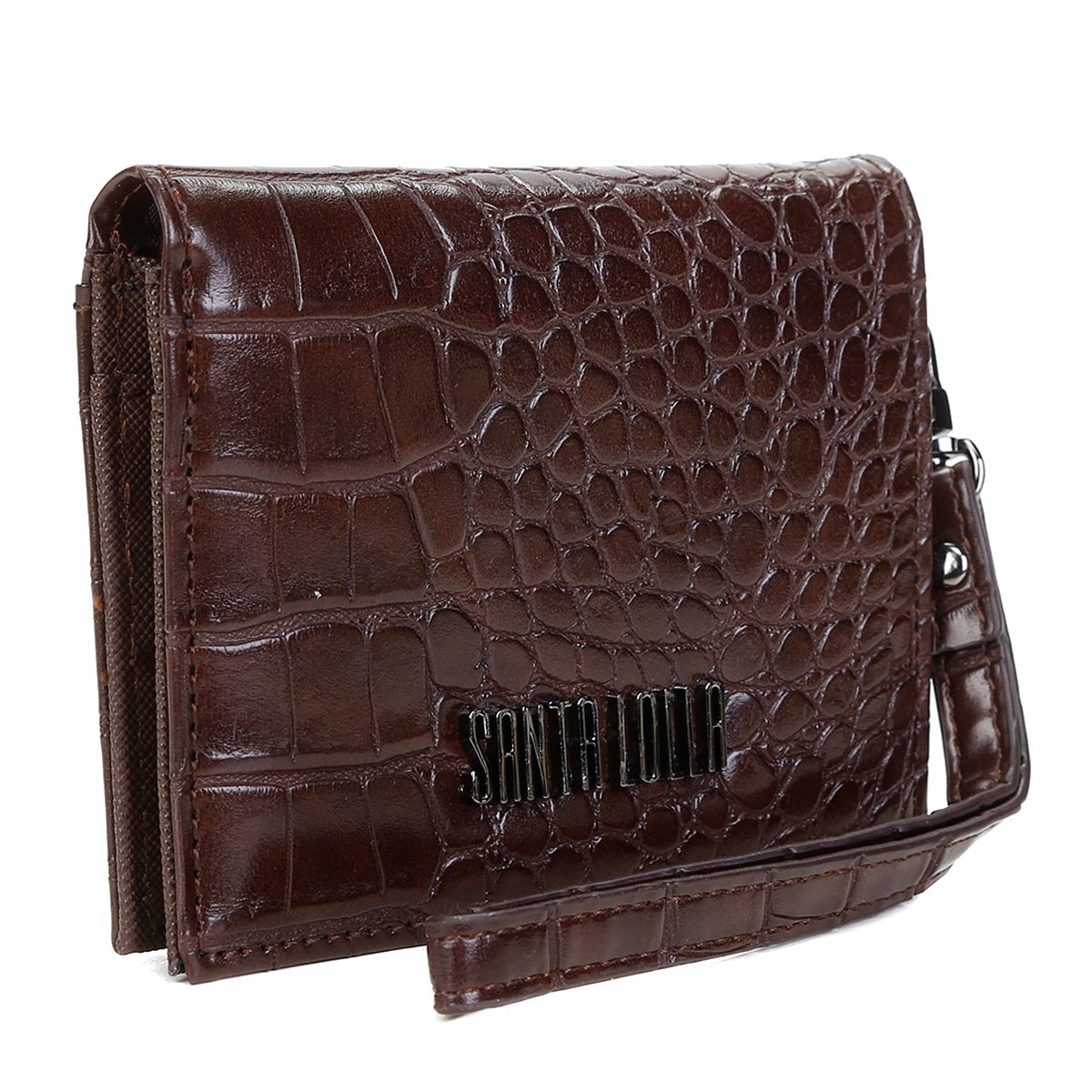 Carteira Santa Lolla Croco Alto Brilho Feminina- Castanha