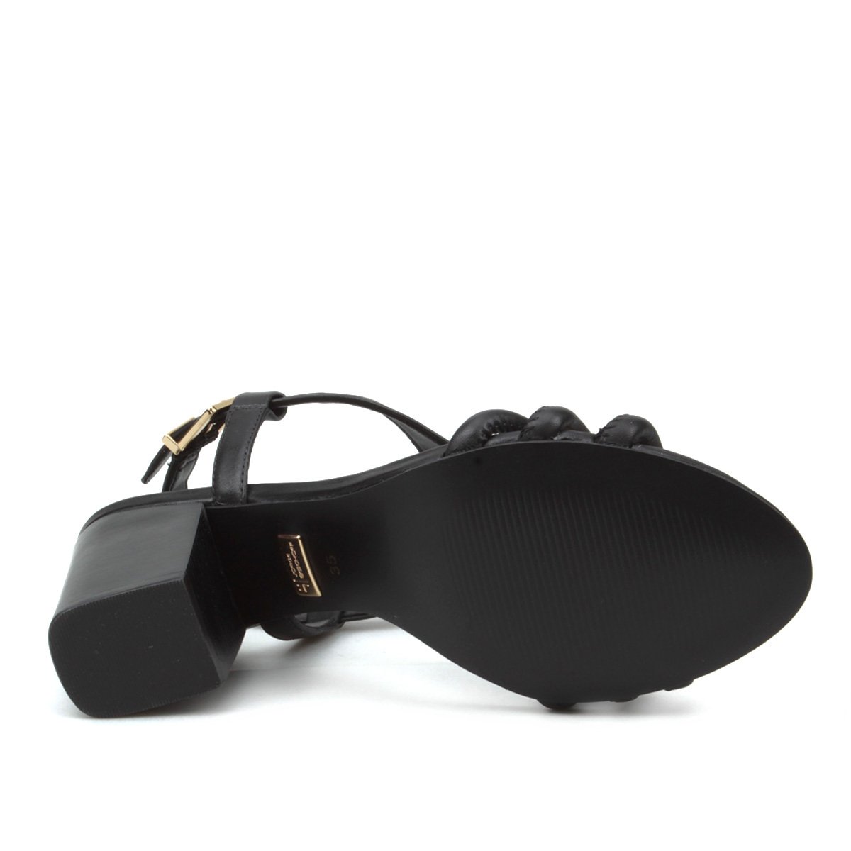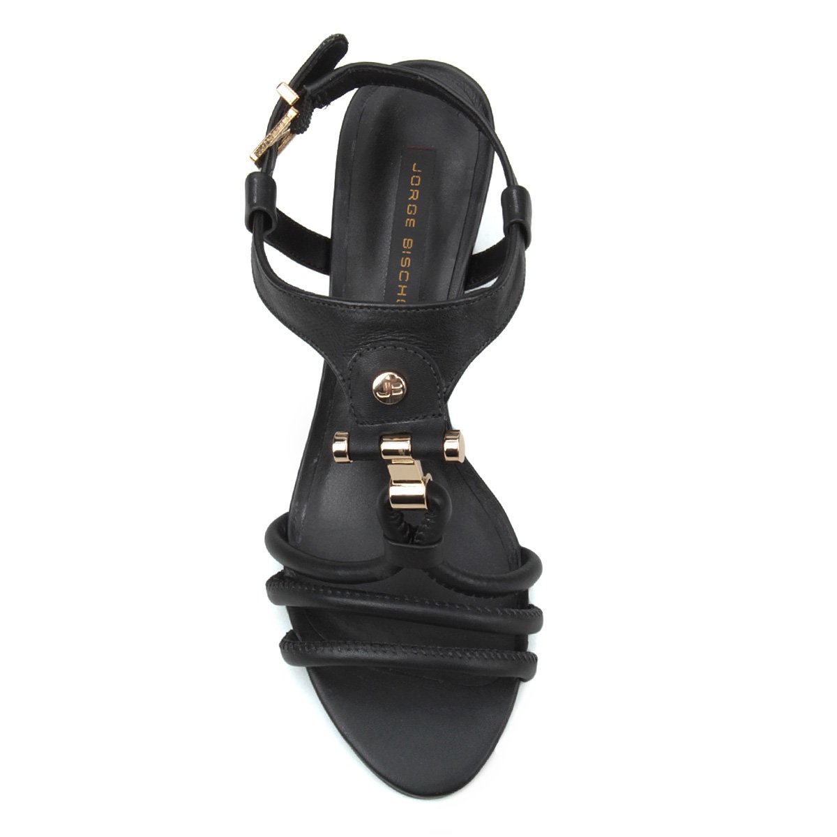 Sandália Couro Jorge Bischoff Salto Grosso Tiras Metal Feminina - Preto