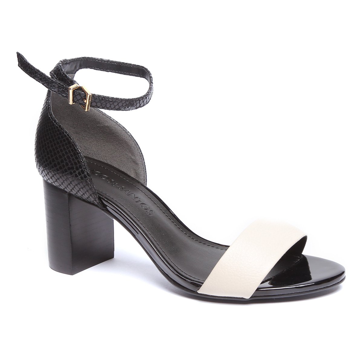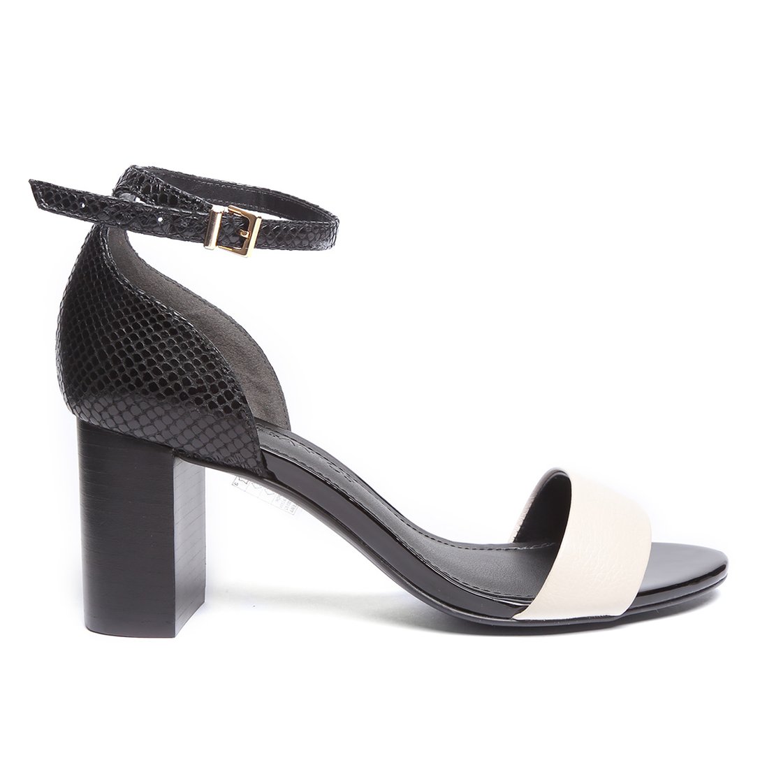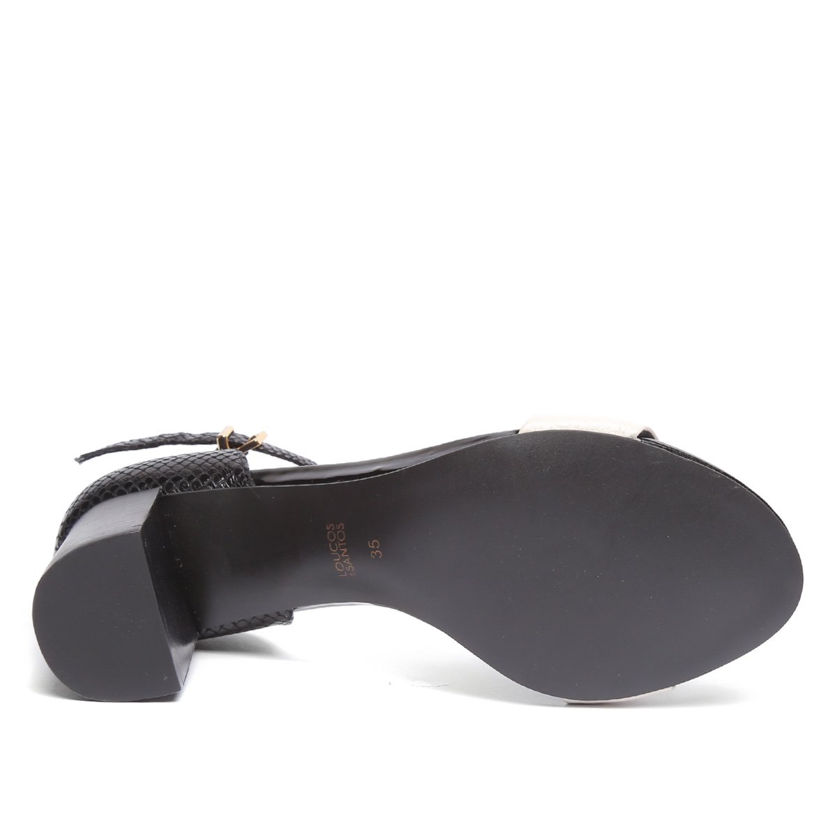 Sandália Couro Loucos & Santos Salto Grosso Detalhe Snake Feminina