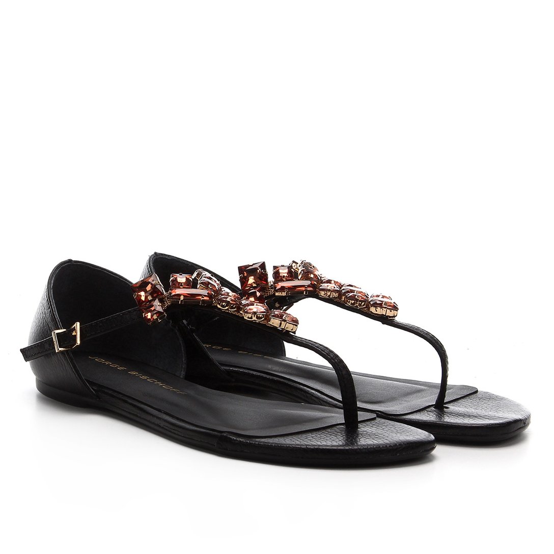 Sandália Rasteira Couro Jorge Bischoff Pedraria - Preto