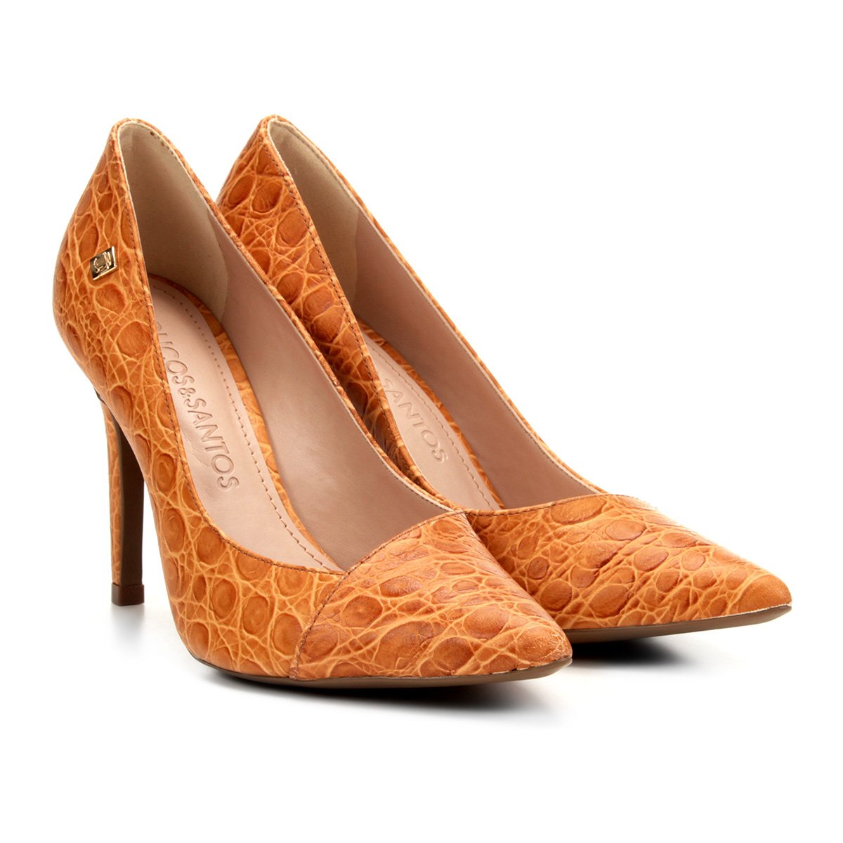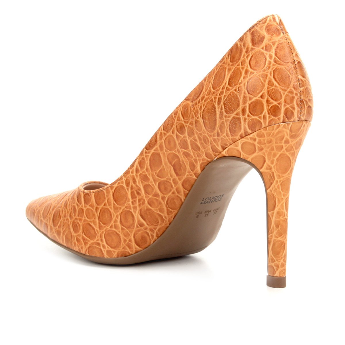 Scarpin Couro Loucos & Santos Salto Alto Croco - Conhaque