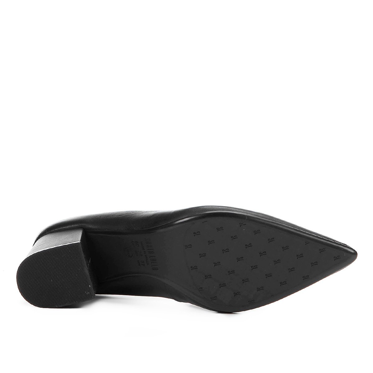 Scarpin Couro Santa Lolla Salto Médio Bloco Bico Fino - Preto