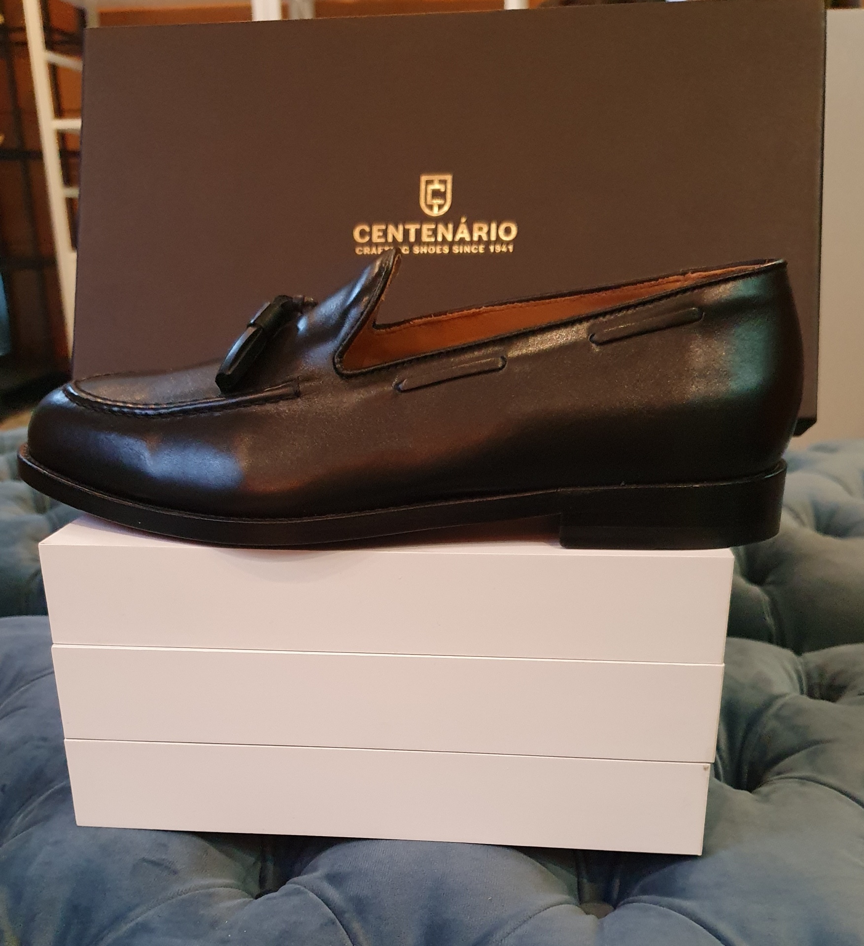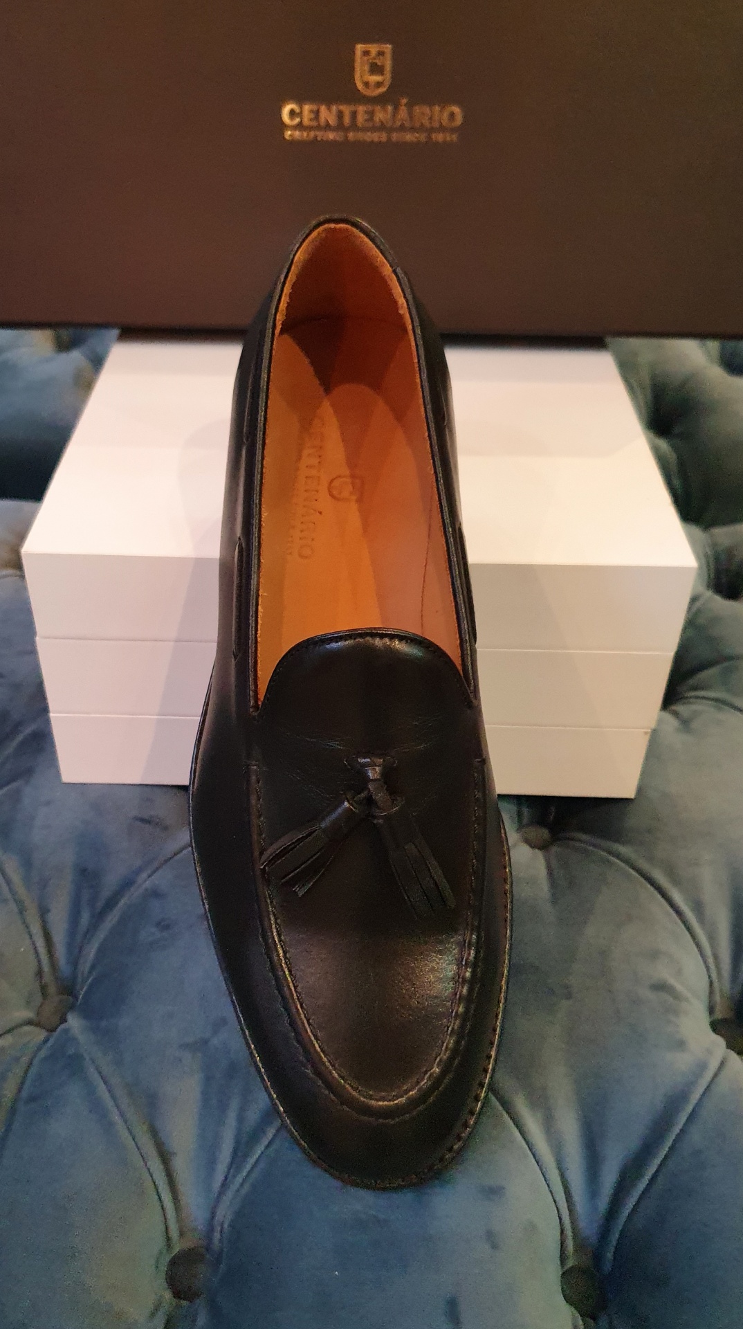 Este Tassel Loafer da Centenário, excelente para usar com fatos de tweed, com sola em pele e borlas para enfeite da parte frontal.