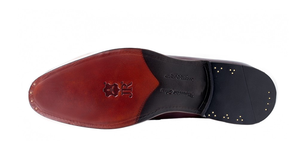 Como todos os sapatos, da Crownhill Shoes, estes são fabricados em Espanha com o sistema Goodyear Welted, que garante durabilidade superior e feito com a forma Lennon, a mais confortável de todos as formas na categoria Premium. A sola grossa ultra flexível fabricada à mão por Johann Rendenbach Jr.J.R., com costuras ocultas, é adornada com uma cor marrom avermelhada e preta, uma iguaria de todos um sedutor.