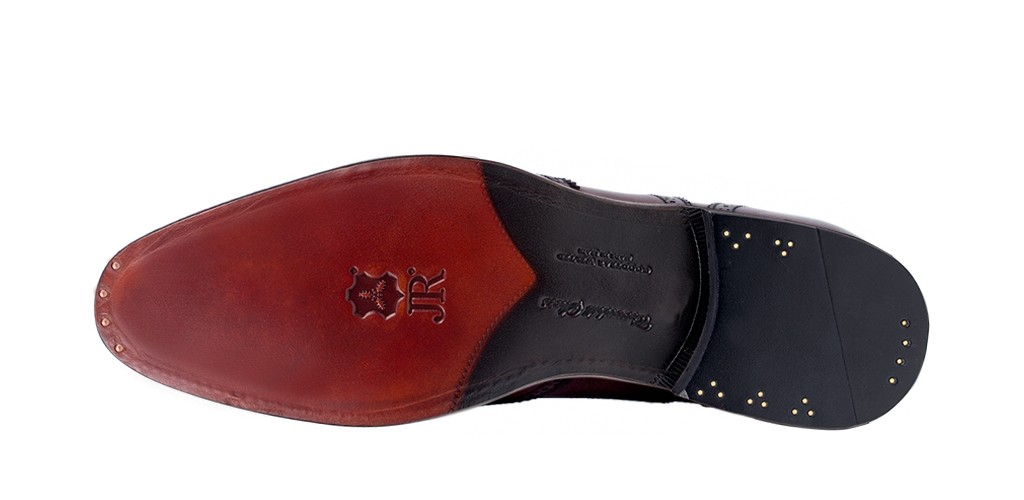 Agora olhe para os 4,5 mm solas grossas ultra flexível fabricados feitos à mão por Johann Rendenbach Jr., curtidas com raízes de carvalho e carvalho-casca e óleo terminado nos últimos meses para dar mais elasticidade.